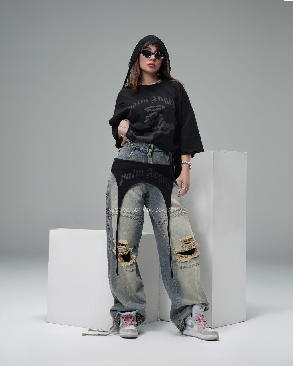 شاید نگرانی اینو داشته باشی که شلوار سایز نشه و براتون بزرگ باشه باید بهتون بگم دخترای خوشگل من ای کار کمرش دارای دوتا سگک میباشد برای سفت کردن شلوار![]()